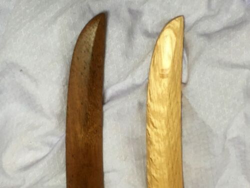 粋陽堂さんのご協力で完成した第一号。 色の薄いほうが今回完成した日本製のシャシュカ木刀。 システマ練習用木刀の安定供給を目指している。 まだ検討を要する。